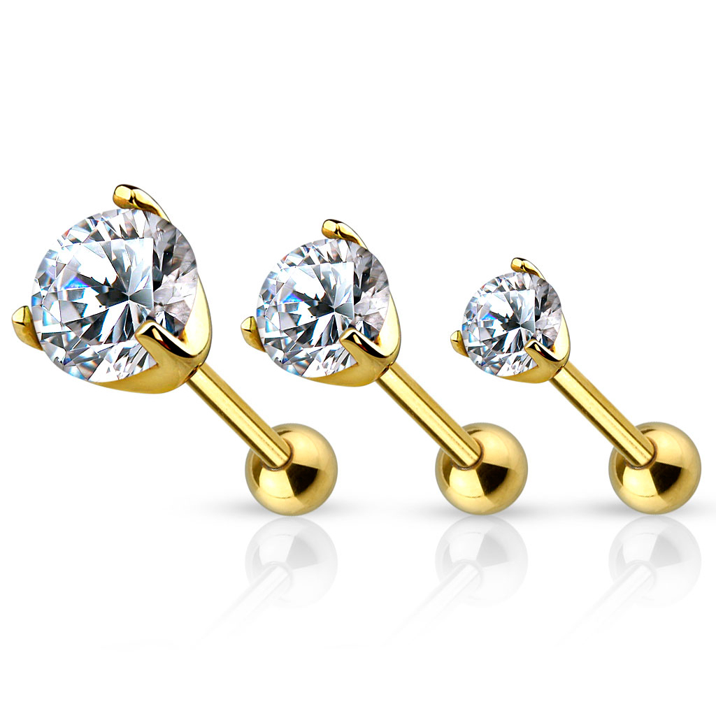 Itt a remek lehetőség, hogy ennek a fényűző, szinarany szettnek a tulajdonosa legyél. A szárak vastagsága 1.2 mm, tehát sztenderd piercing méretek. A szett három gyönyörű fülbevalót tartalmaz, fehér kőberakással, három méretben: 2, 3 és 4 mm.