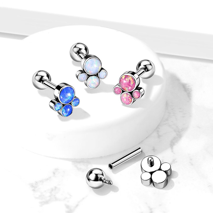 4 opál kővel díszített, belső-menetes titánium barbell