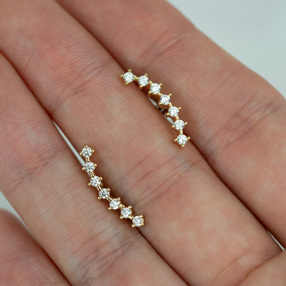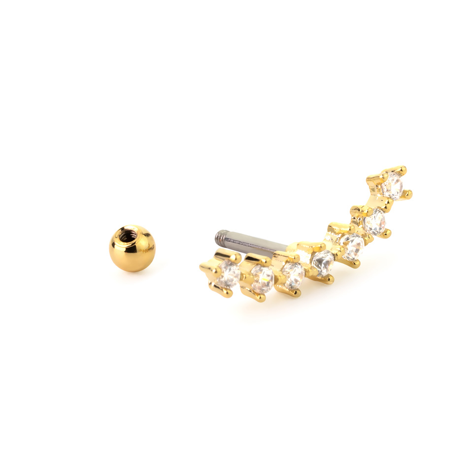 Ez a nagyszerű fülpiercing dizájn fantasztikusan kiegészitheti bárki stilusát, főleg, ha valami figyelemfelkeltő darabot keresel. A barbell ives felső része úgy ragyog, mint az éjszakai égen a csillagok. Önmagában is vonzza a tekinteteket, de nagyszerű kiegészitő darab is lehet más ékszerekkel együtt viselve. Hordhatod helixben, conchban, fülcimpában. Próbáld ki többféle variációban.