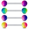 A fenti képen egy orvosi acélból készült, vidám kis egyenes szárú piercinget látsz. A szár végein található golyók színes gumibevonattal vannak ellátva, amin színátmenet is látható, így még különlegesebb hatása lesz a piercingnek.
