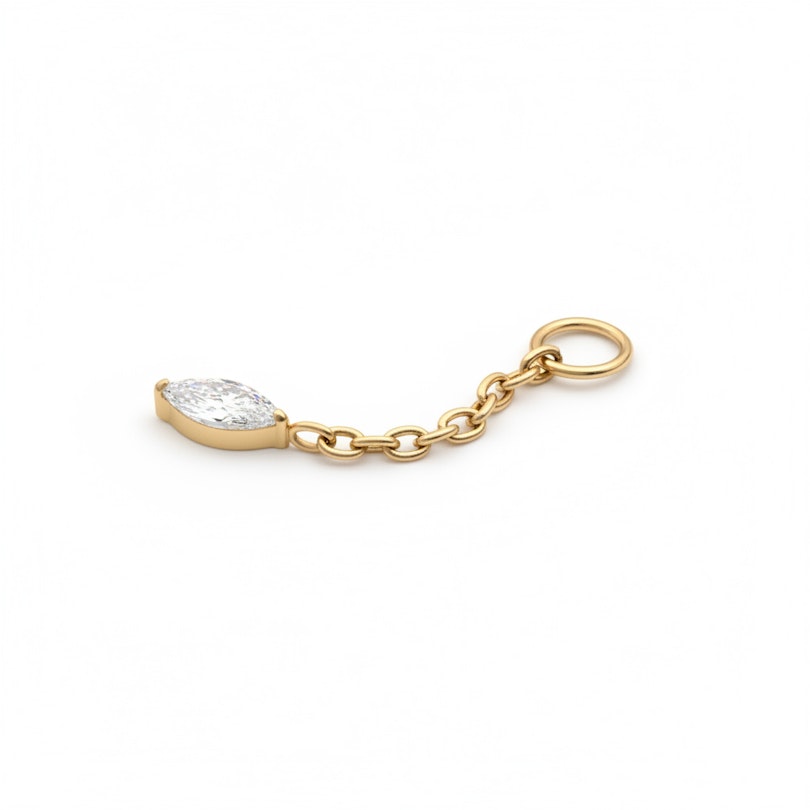 A charm ovális kővel egyszerűen, de kicsit sem unalmasan teszi a dolgát. Az ovális kő egy finom titán láncról lóg, gyengéden együtt mozdul veled, így adva életet az ékszereidnek. Egy részlet, amely mindenhol jól mutat; csúsztasd rá kedvenc karikádra, amennyiben az nem vastagabb 3 mm-nél.
