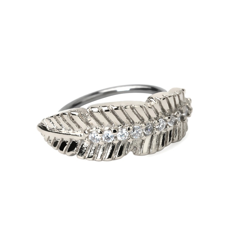 A karika bőröddel érintkező oldala orvosi acélból, a díszítés pedig sárgarézből készült. A behelyezéshez csavard az ékszert előre vagy hátra, hogy S-alakot formáljon. Miután átment a piercinglyukadon, összezárul.