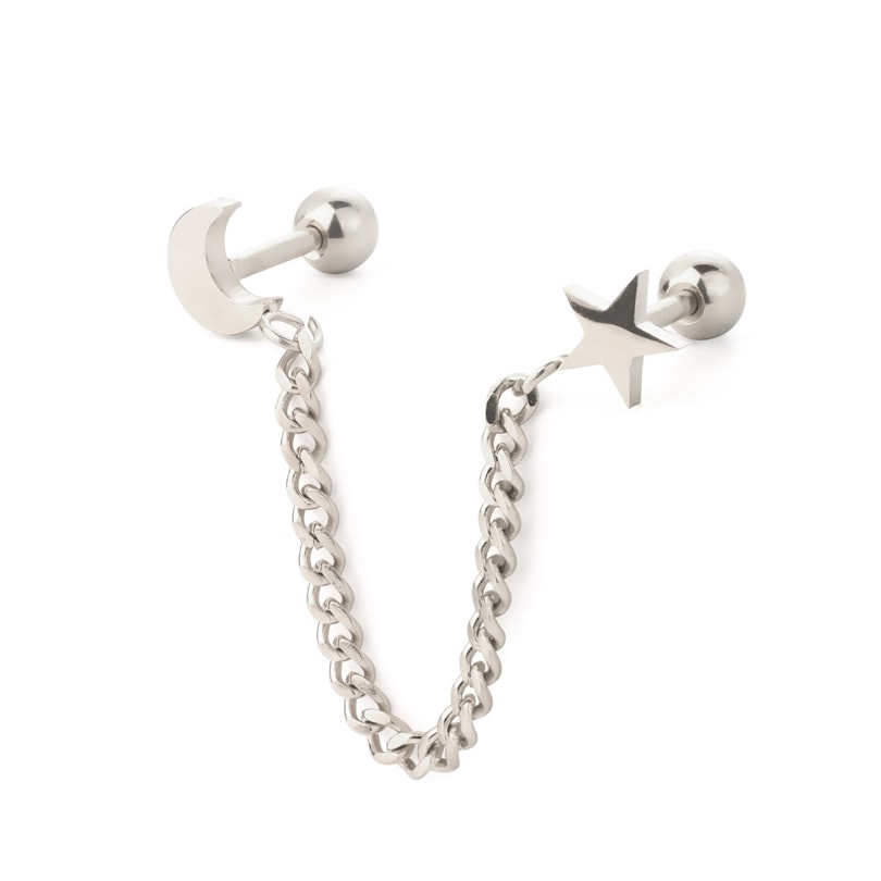 Az ékszer ezen kívül még két kisebb piercingből áll, amelyeket a lánc köt össze. Ezek közül mindkettő 1,2 mm vastag és 6 mm hosszú. Hátulsó oldalukon 4 mm-es lezáró golyó helyezkedik el. Elöl egy csillag és egy félhold díszíti.