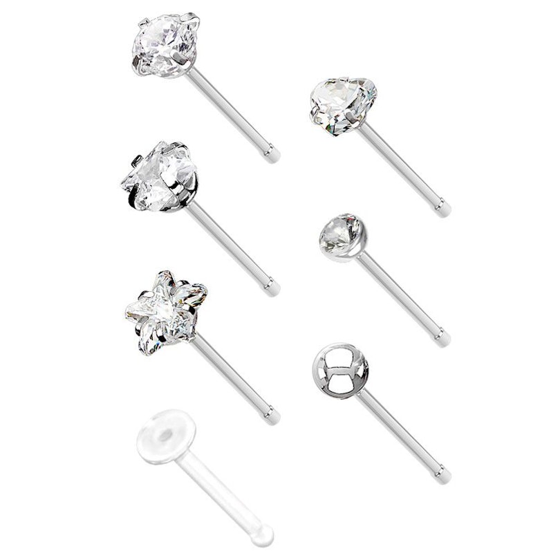 Szeretnél a hét minden napján más orrpiercinget viselni? Ebben az esetben ezt a mesés 7 darabos csomagot pont neked találták ki. Mindegyik ékszernek más dizájnja van: elegánstól az egyszerűig, minden alkalomra találsz köztük tökéleteset. A csomag tartalmaz egy retainert is, azokra az alkalmakra, amikor jobb nem felhivni a figyelmet az orrpiercingedre. Ha valami különlegesre vágysz, akkor pedig ott van a csillag és a sziv alakú piercing. A többi ékszer klasszikus félgömb és négyzet alakú köves. Amint látod, van miből választani.