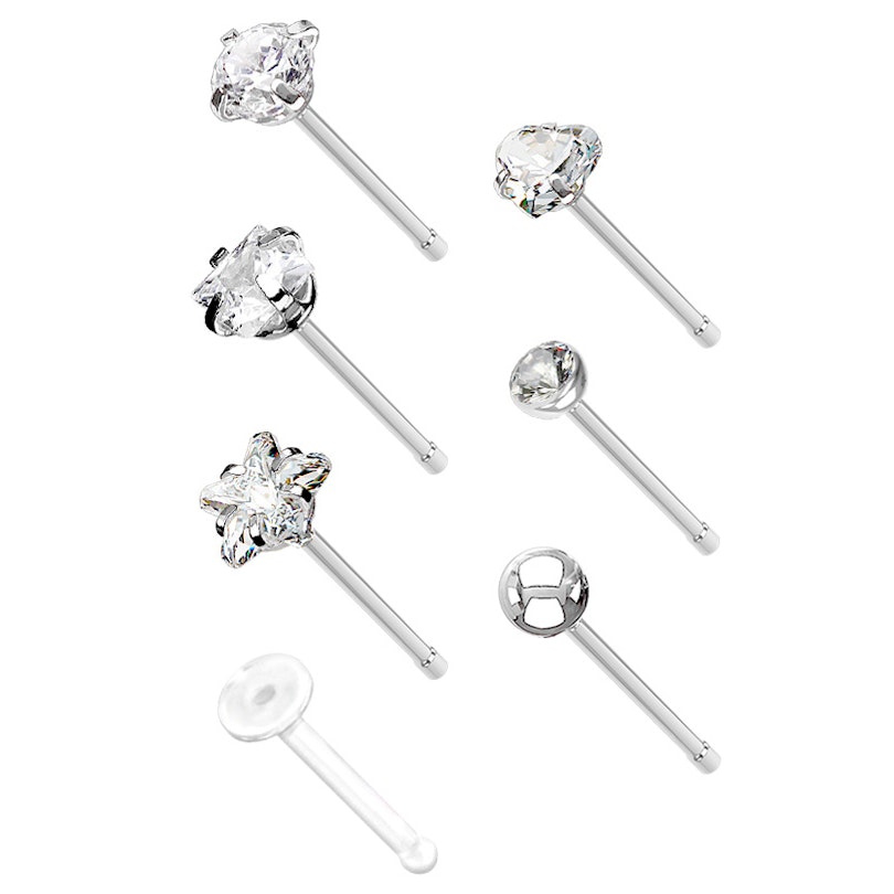 Ezzel a csomaggal nem probléma úgy változtatni a piercingedet, ahogy csak szeretnéd. Nem kell feltétlenül minden nap cserélni, de ha szereted gyakran váltogatni, akkor erre van szükséged. Mindegyik ékszer orvosi acélból készült, kivéve a retainert. Egyforma a méretük: 0.8 mm vastag és 6 mm hosszú rudakon ülnek.