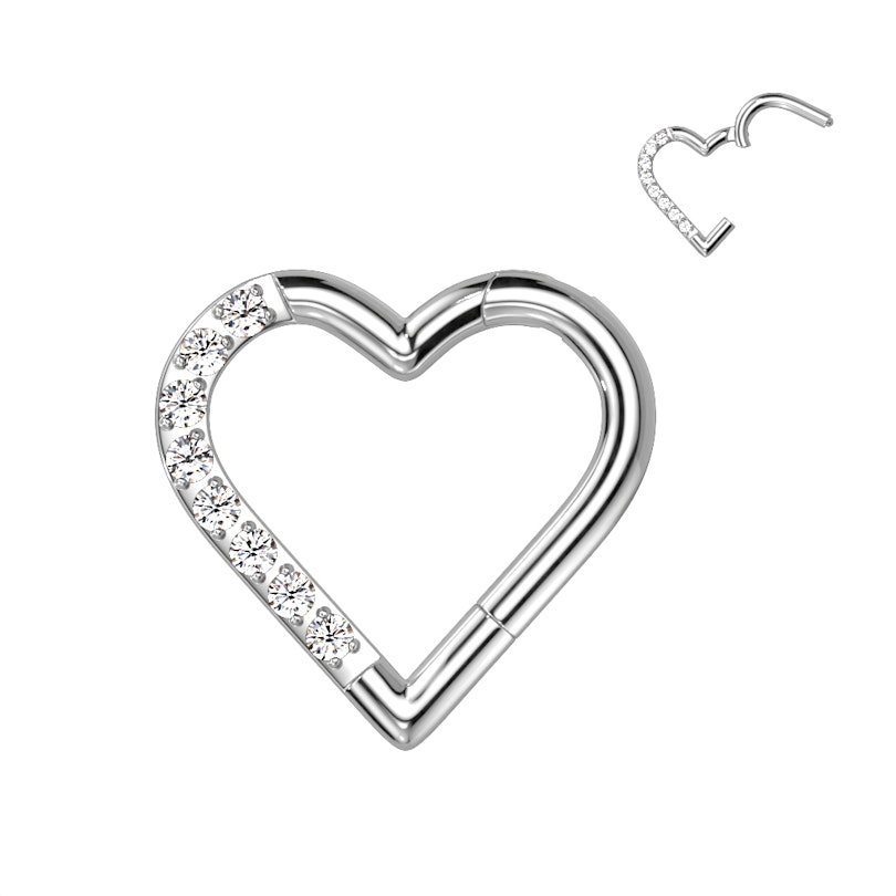 Csuklós, cirkónia köves, szív alakú ékszer titánból