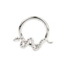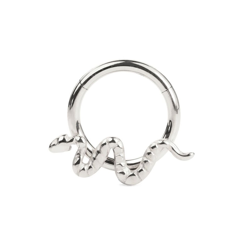 Egyszerűen csak szét kell húzni a csuklós résznél, hogy kinyíljon, majd beillesztés után visszakattintani a helyére. A karika G23-as titánból készült, ami a lehető legtisztább piercing ékszer alapanyag. Akár frissen szúrt piercingnél is használható, és nikkelallergiások számára is biztonságos választás.