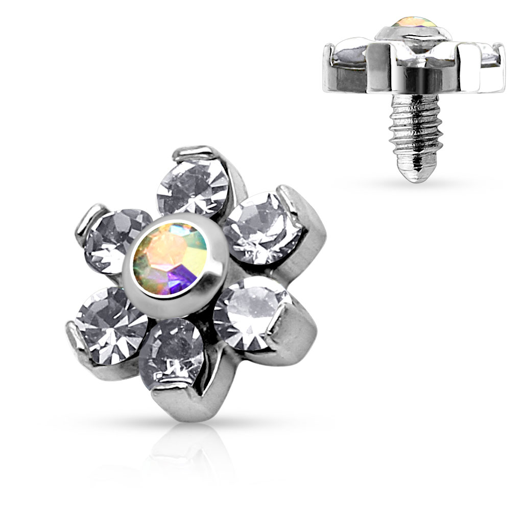 Név: Dermal anchor fej, csillogó kövekből kirakott virággal