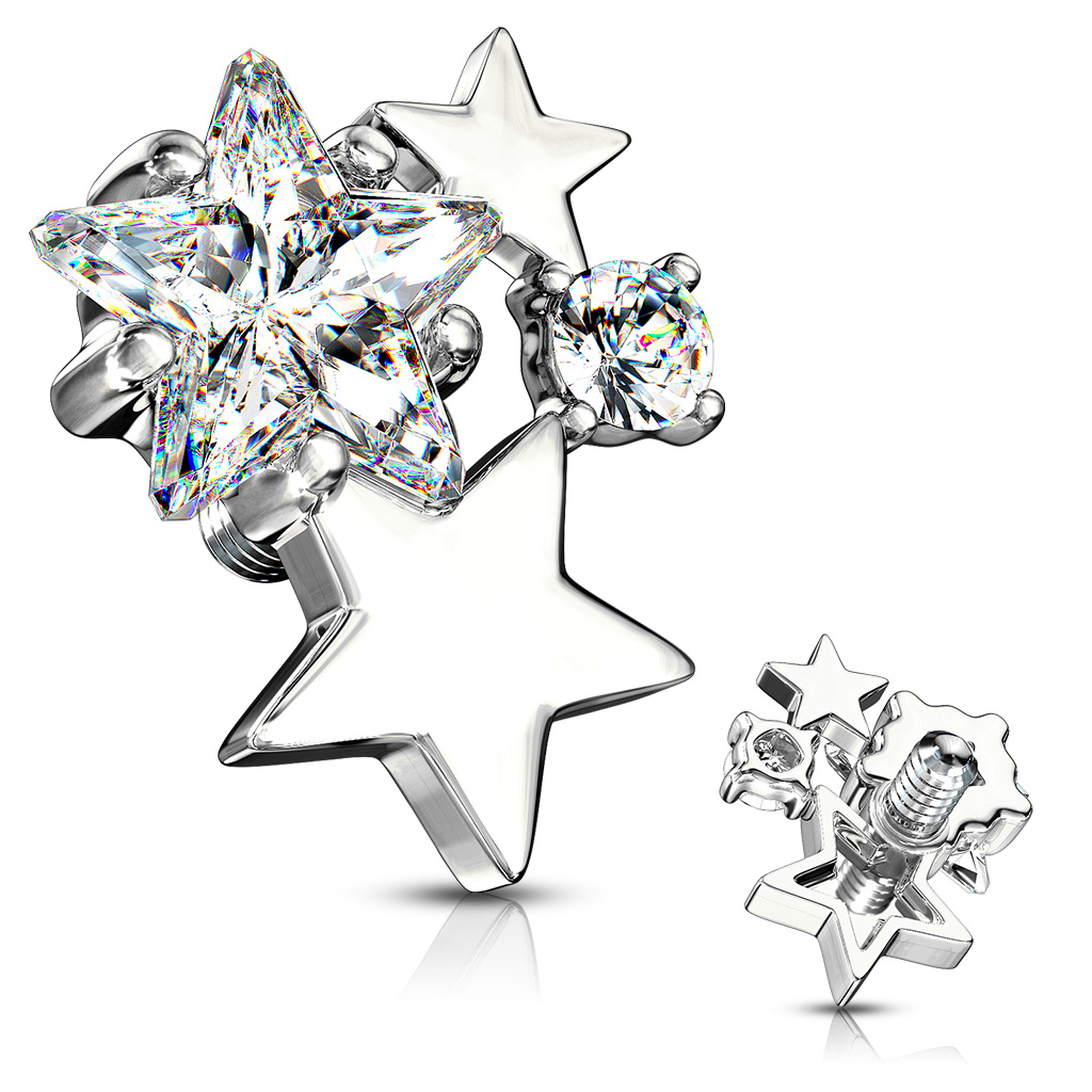 A csillagokat rézből formázták meg, a piercing hátulján található csavaros rész (ami a dermal talpba illeszkedik majd) pedig orvosi acélból készült. A csillagokat különböző fedőrétegekkel látták el, így több színben is elérhetőek számodra.