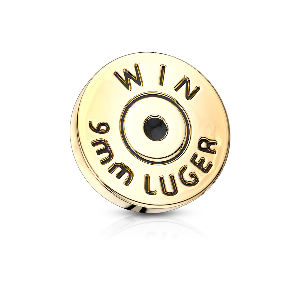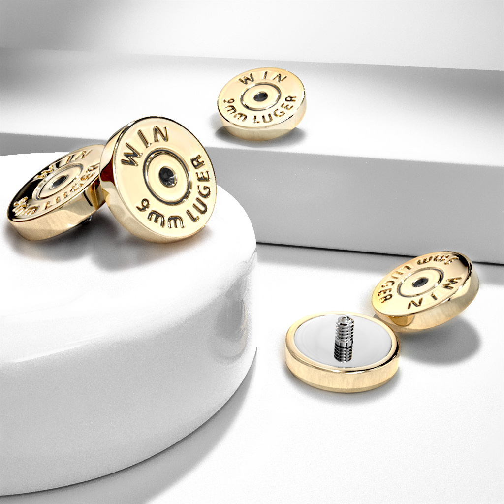 A fej alsó része (az a rész, amelyik majd érintkezni fog bőröddel) orvosi acélból készült, a felső töltény rész pedig rézből lett formázva, majd arany színű bevonatot kapott, hogy tényleg olyan legyen, mint egy valódi töltény.