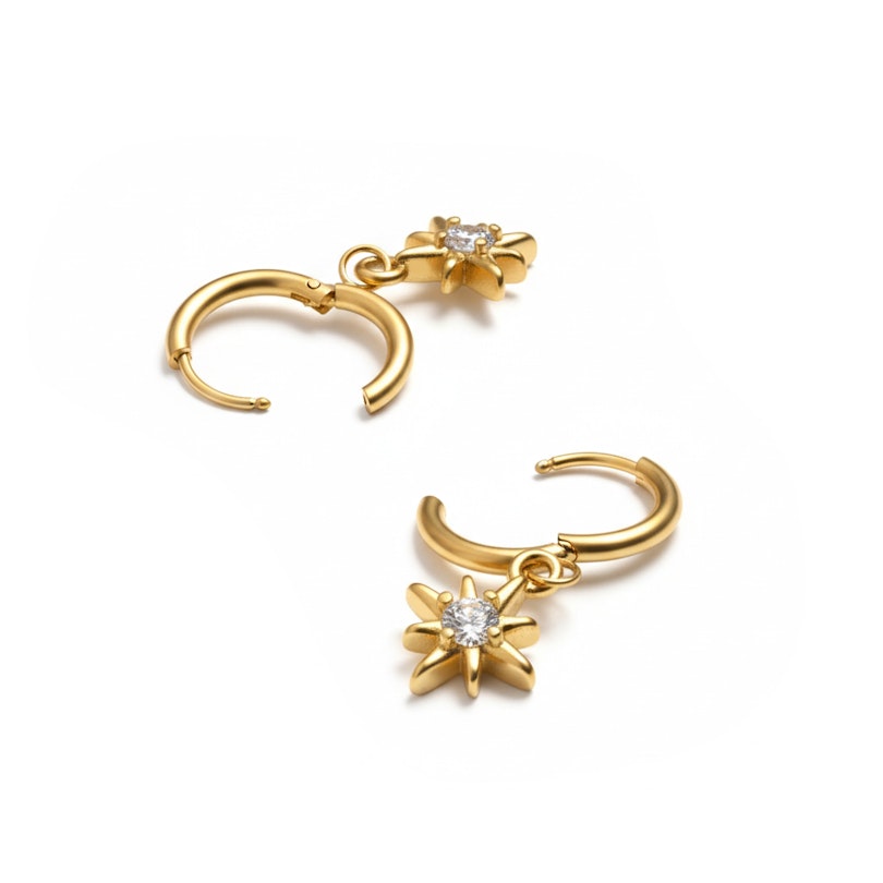 A napsugaras medállal díszített huggie fülbevalók minden alkalommal feldobják a hangulatodat, amikor viseled őket. Mindkét karikán egy részletesen kidolgozott napsugaras medál lóg, középen kővel díszítve, ami pont annyi egyéniséget ad a fülednek, hogy ne legyen erőltetett.