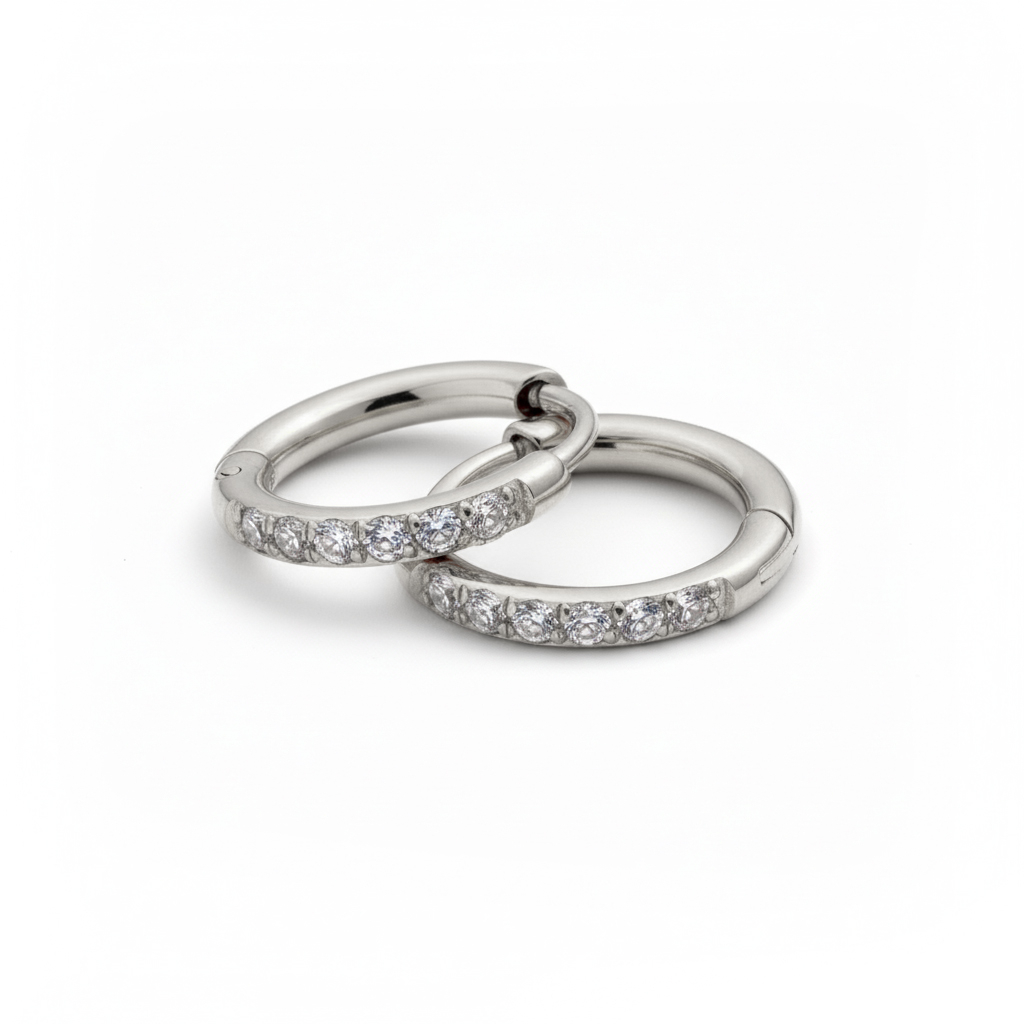 Egy pár orvosi acél huggie karika kövekkel