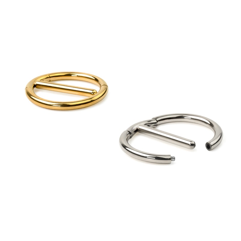 Ez az ékszer bizonyára minden idők legkönnyebben használható mellbimbópajzs-piercingje! Egyszerűen nyisd szét a karikát, helyezd be a rudat a piercingbe, és zárd be a karikát a mellbimbó körül. A nem eltávolítható kapcsos szegmensnek köszönhetően mind a felhelyezés, mind az eltávolítás gyerekjáték. Mi fülig szerelmesek vagyunk ebbe a termékbe - te is?