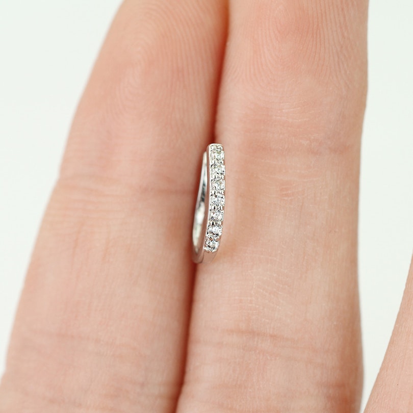 Az ékszer vastagsága kb 1 mm, és ahogy a képen is látható, hét fehér cirkónia kővel van sorban kirakva. Mivel ez egy álékszer, és nem megy át a bőrön, igy az egész rézből van, ezüst bevonattal.