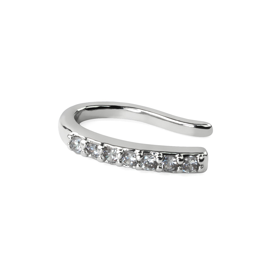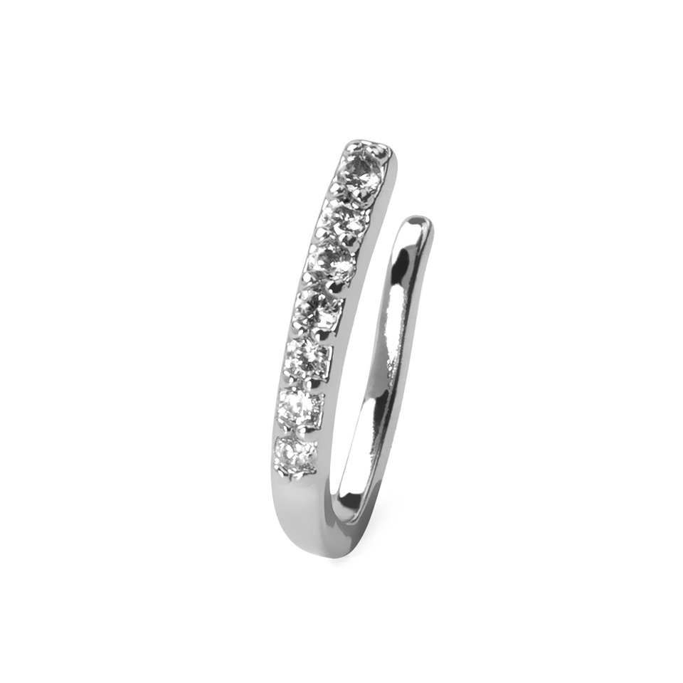 Az ékszer vastagsága kb 1 mm, és ahogy a képen is látható, hét fehér cirkónia kővel van sorban kirakva. Mivel ez egy álékszer, és nem megy át a bőrön, igy az egész rézből van, ezüst bevonattal.