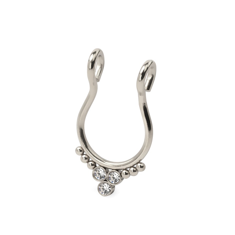 Egy ilyen klipsz ékszerrel nagyon könnyen és gyorsan fel tudod dobni a stílusodat. Az álseptum karikák ott kapaszkodnak meg az orr belsejében, ahol a valódi septum piercing lenne átszúrva, szóval senki sem fogja megmondani, hogy nem igazi. Ez a darab nem csak szép, hanem minőségi is - 316L-es orvosi acélból készült.