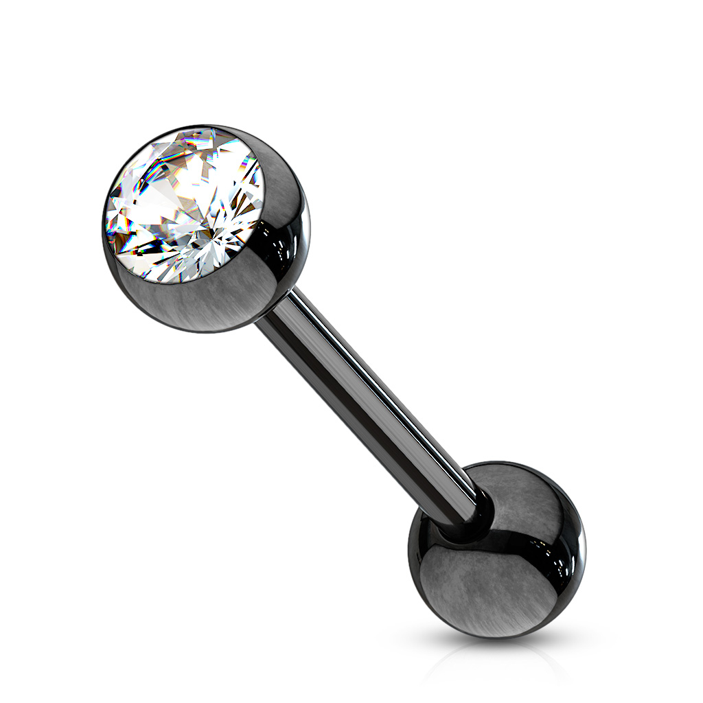 Ez az orvosi acélból készült nyelvpiercing fekete titán bevonatot kapott.