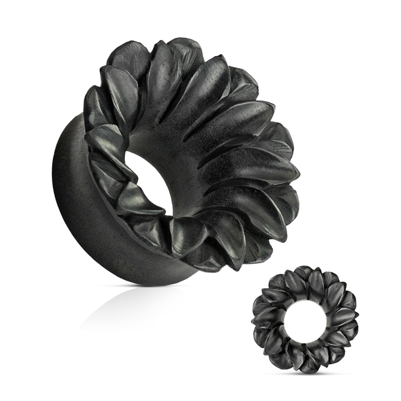 Ennek a fekete, organikus fából készült alagútnak az elejét egy virág díszíti, és az anyagának köszönhetően tökéletesen alkalmazkodik a testedhez. Az alakja egy lótuszvirágra hasonlít, gyönyörűen mutat majd a füledben.