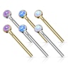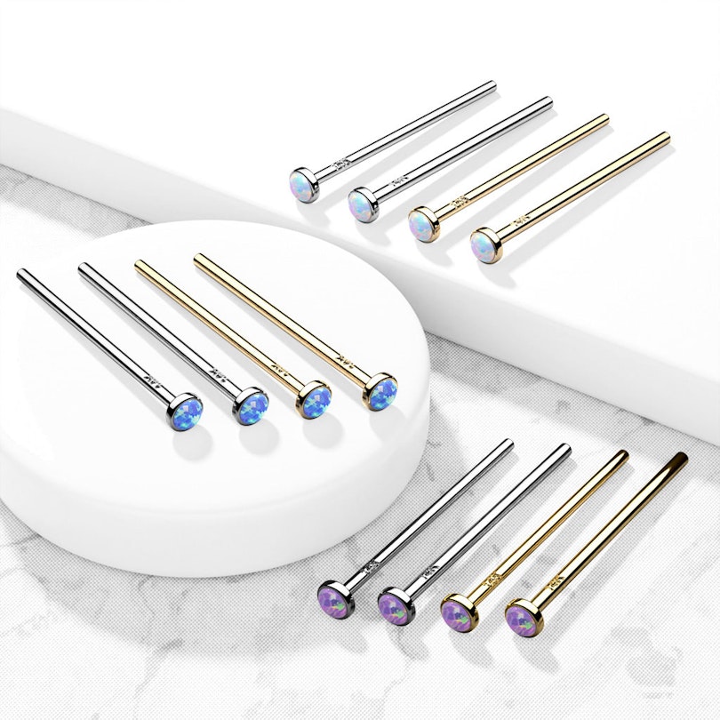 A szár 19 mm hosszú, és két különböző vastagságban kapható. A tetejét díszítő opálkő színét is te választhatod ki. Ez nem valódi opál, hiszen az ékszerek díszítéséhez túlságosan törékeny, a szintetikus opál alkalmasabb erre.