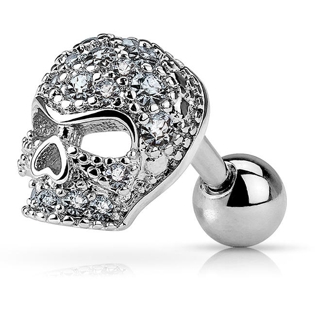 Ez a fantasztikus koponya egy 6 mm hosszú száron ül, végén egy 4 mm-es menetes golyóval. Az ékszer alkalmas a legtöbb tűvel szúrt piercing helyén való hordásra, például tragus, helix, vagy akár fülcimpában is. Bárhol is legyen rajtad, a rocker hatás nem marad el.
