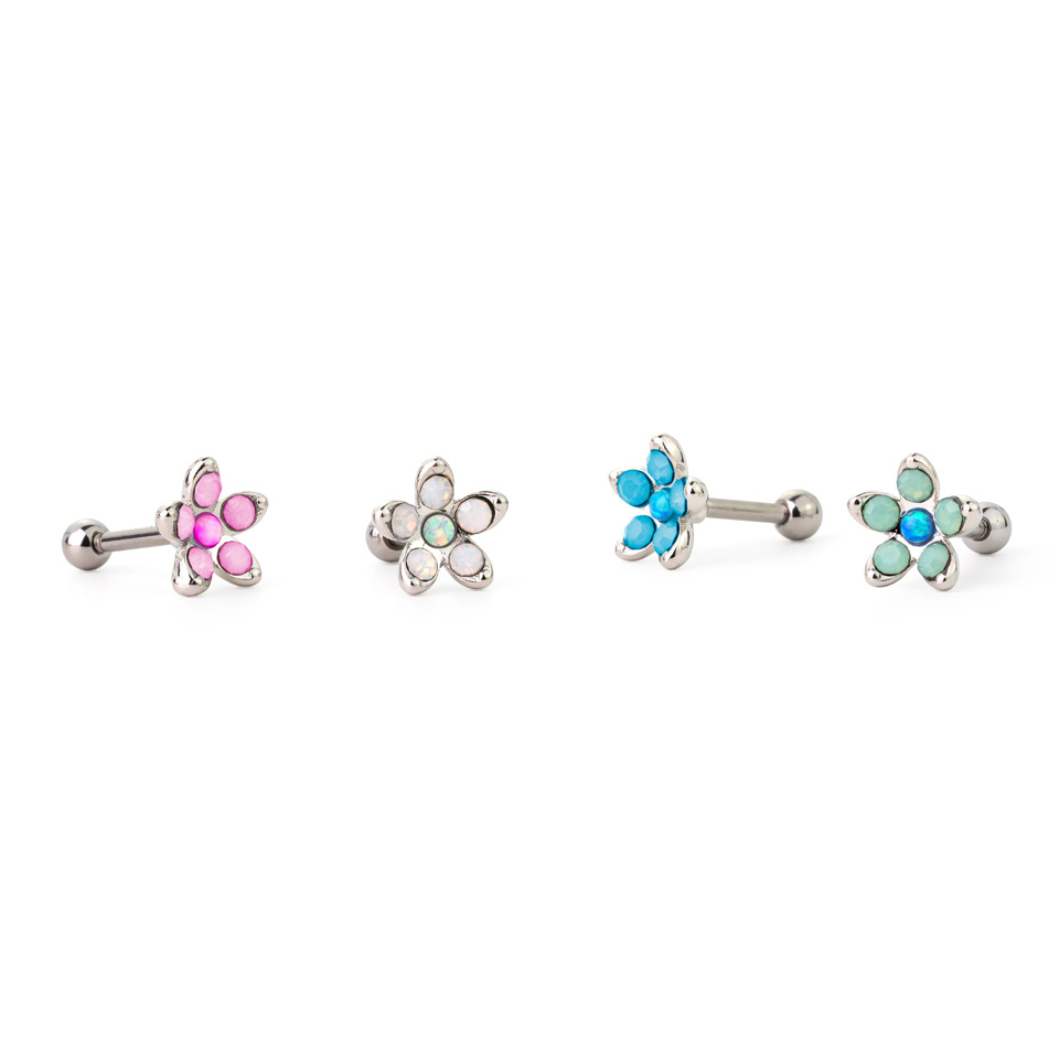 Fül piercing opálköves virággal