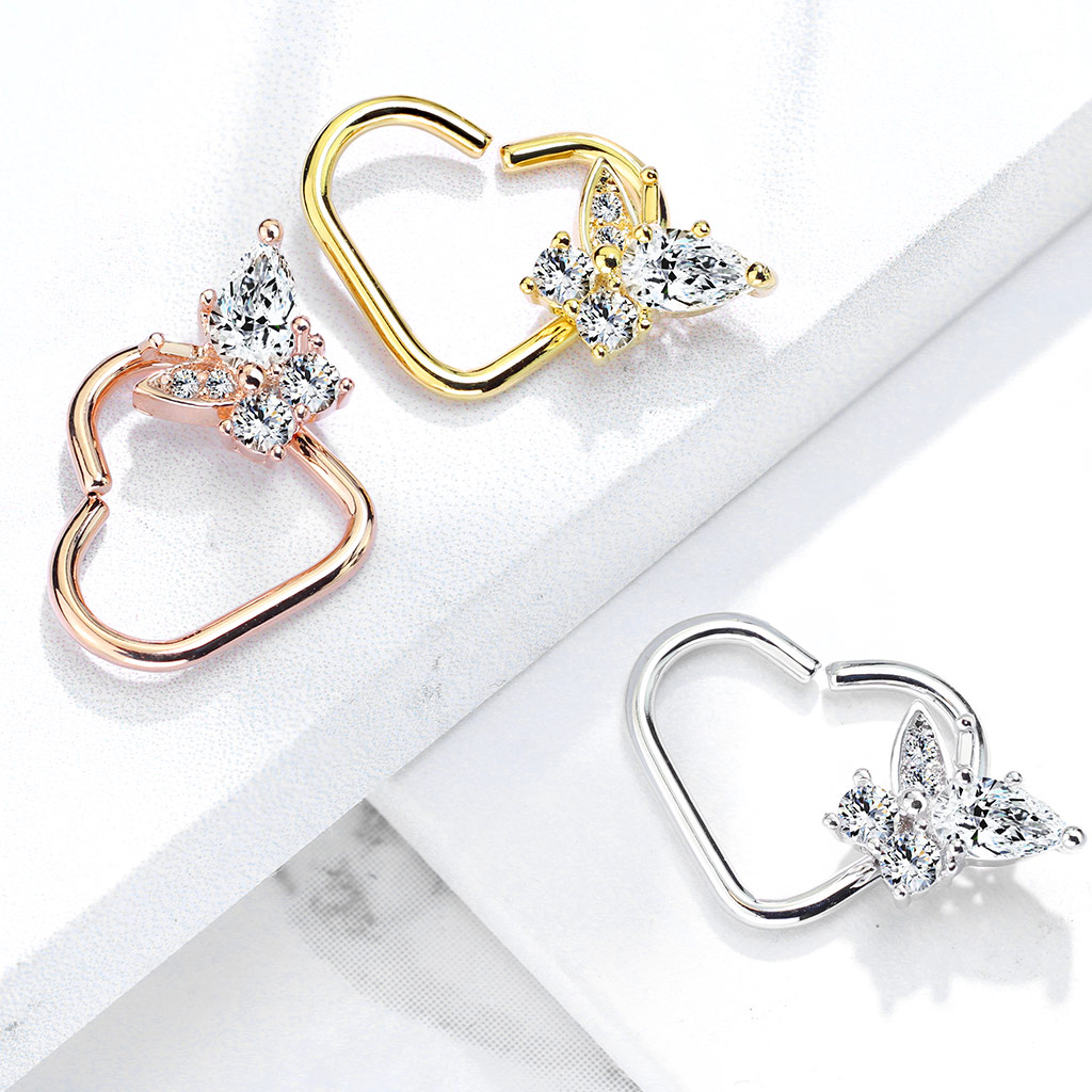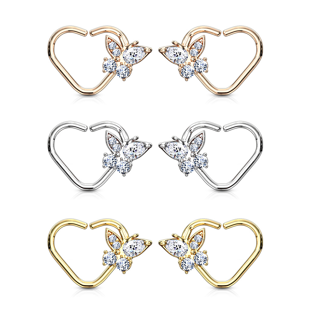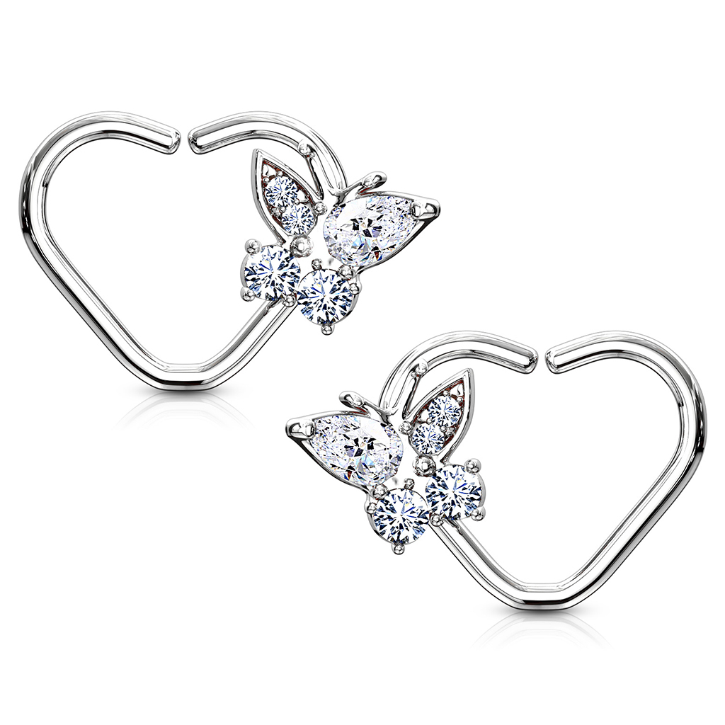 Fül piercing pillangó dísszel, szív formájú