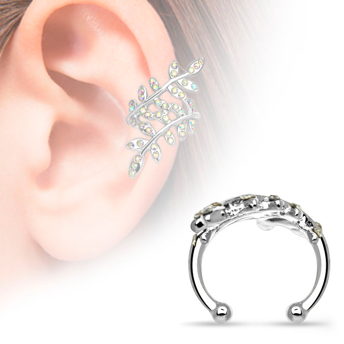 Név: Fülgyűrű csillogó köves levél díszítéssel