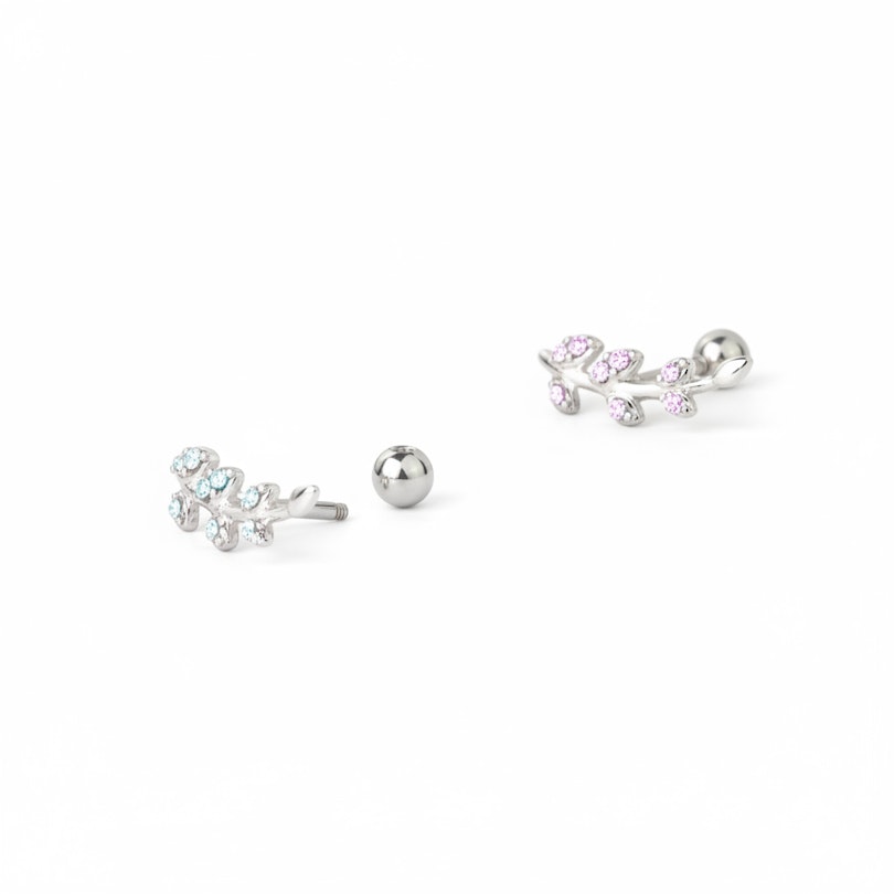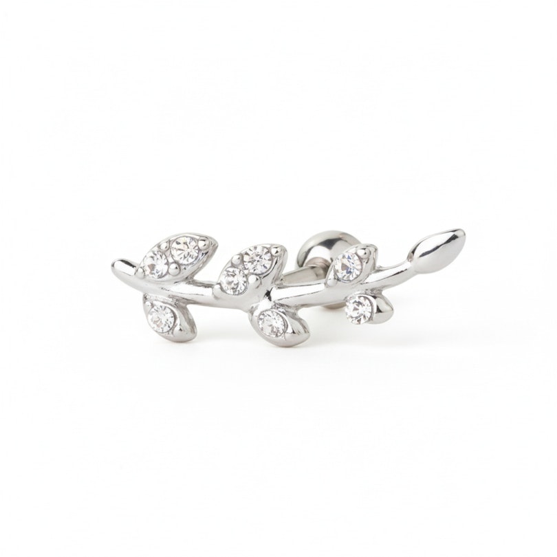 Fülpiercing csillogó köves levelekkel díszítve