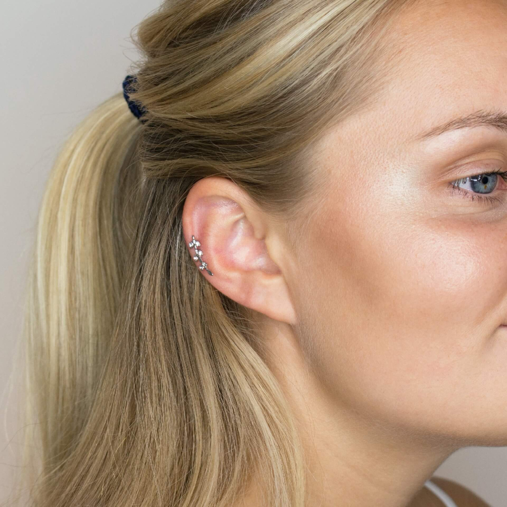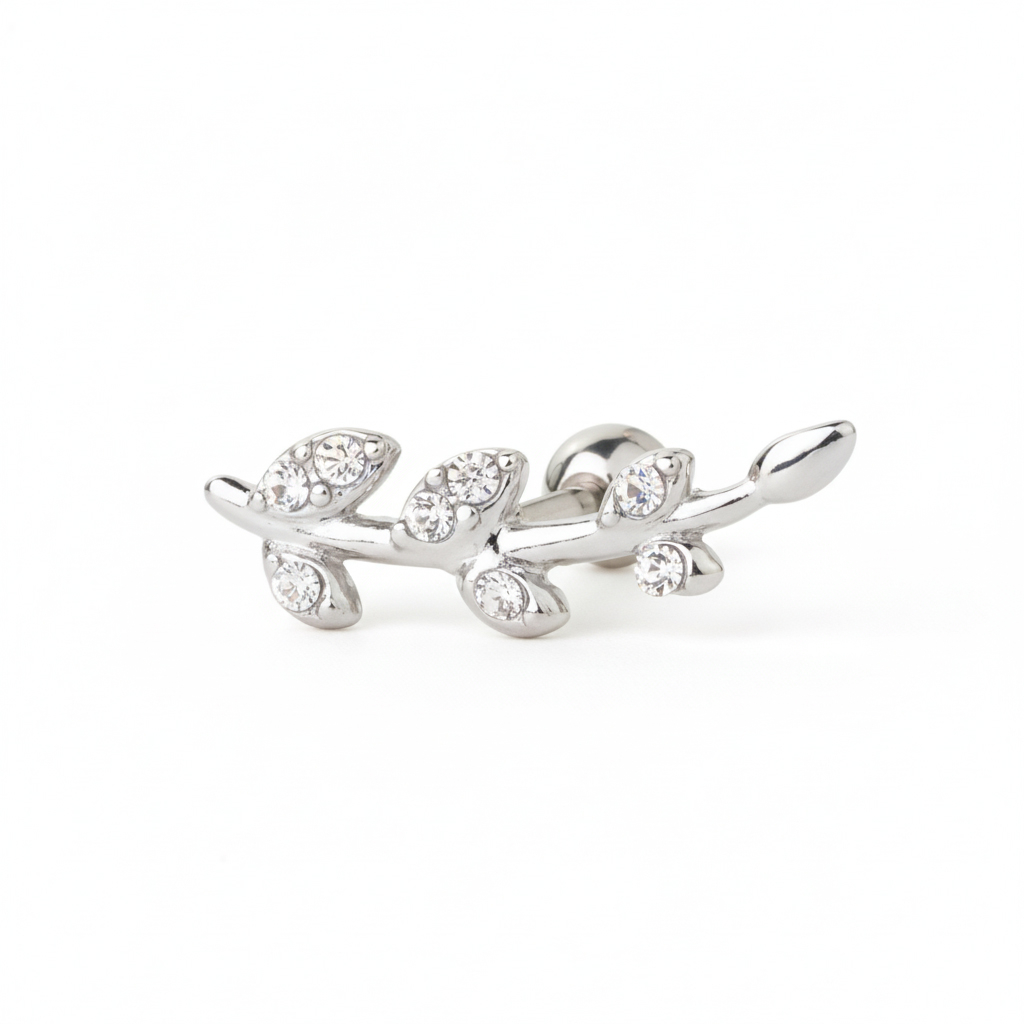 Fülpiercing csillogó köves levelekkel díszítve