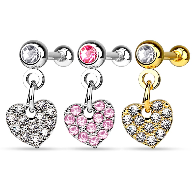 Fülpiercing csillogó köves szív medállal
