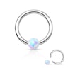 A golyó egy opálkő, amely különböző színekben kapható. Nem csak a golyó színét választhatod ki, hanem a karika színéről is te döntesz, amely ezüst, fekete, arany és többszínű kivitelben készült. A karika vastagságát és a golyó méretét a További információk menüpont alatt láthatod.