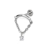 Ez az elegáns labret egy hajlított rúdból és annak a két szárát összekötő láncból áll. A láncról egy apró, lünettába foglalt cirkónia kő lóg. A kő nincs a lánc közepéhez rögzítve, ezért mindig a legalacsonyabb pontról fog lógni, így ez a darab más hatást kelt, elhelyezéstől függően. Nagyszerűen mutat fülcimpában vagy helix piercingben, egymagában vagy más fülékszerek társaságában.