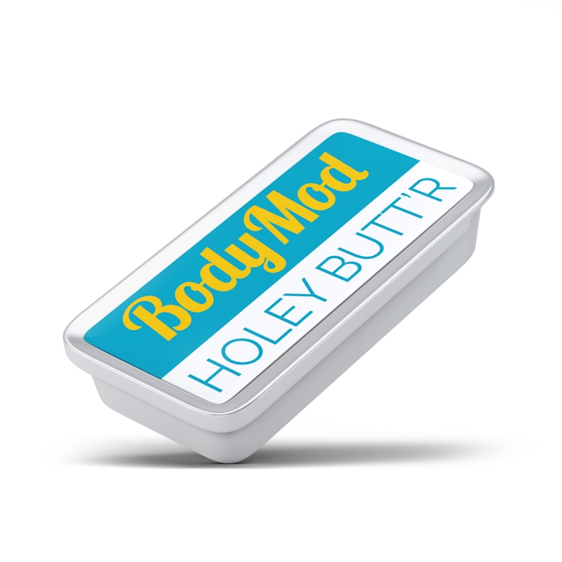 A Holey Butt'r egy vegán bőrápoló krém, ami segit jó állapotban megtartani a tágitott piercinget. Egy egész sor természetes összetevőt tartalmaz, és jó hidratáló tulajdonságai vannak.