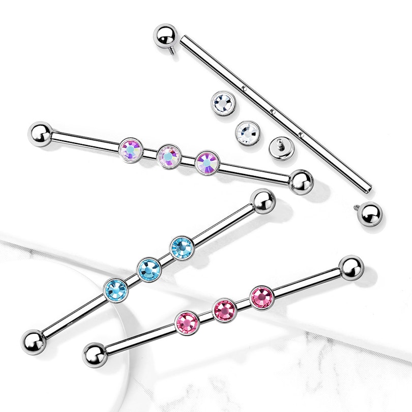 Név: Industrial barbell 3 csillogó kővel, belső menettel