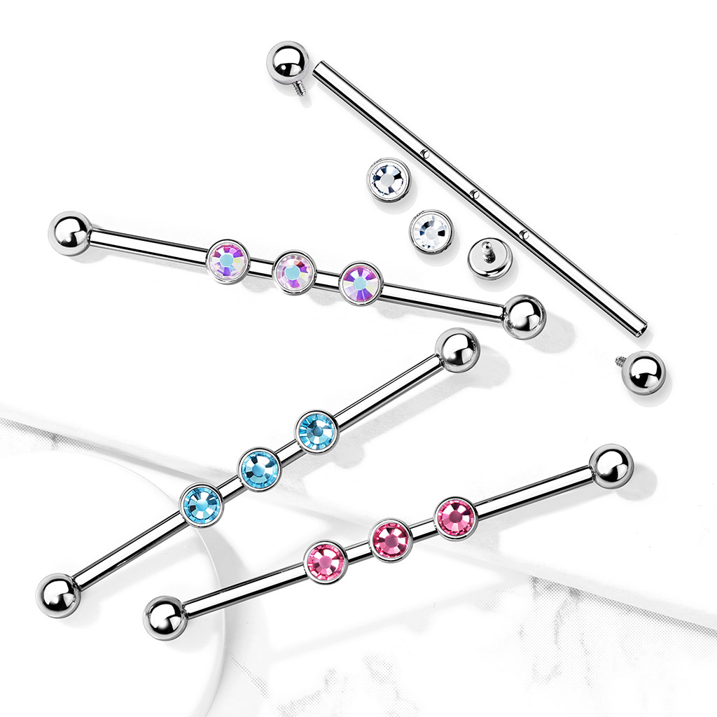 Név: Industrial barbell 3 csillogó kővel, belső menettel