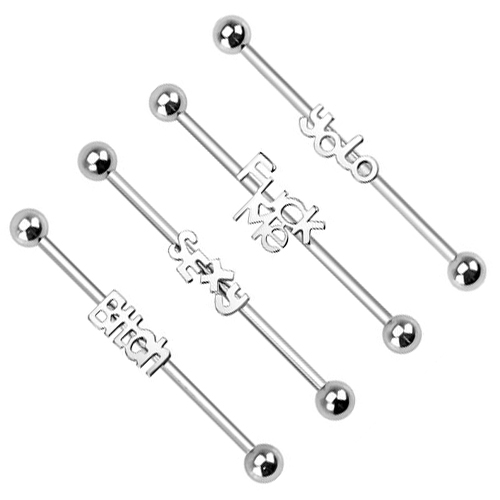 Ezzel az industrial ékszerrel könnyűszerrel üzenhetsz az egész világnak. A Fuck Me az elég provokativ. A Sexy az nagy önbizalmat sejtet. A Bitch akár humoros is lehet. A Yolo a You Only Live Once, azaz a Csak Egyszer Élsz mondatnak a röviditése, ebből adódóan azoknak a jelszava, akik maximálisan ki akarják élvezni az életet.