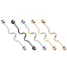 Különleges, több izgalmas színben is elérhető, hullámos szárú industrial piercingre találtál, ami nagyon vagányan néz ki a fülben. Ahhoz, hogy berakd, egyszerűen csavard le mind a két végéről a golyót, óvatosan illeszd be mind a két lyukba majd zárd le a piercinget ismét a golyókkal.