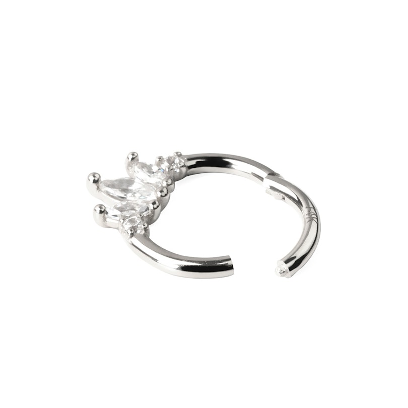 A karika alsó részét öt darab kő díszíti. A kerek kövek a két oldalon helyezkednek el, közöttük három ovális kő található. A középen lévő ovális kő nagyobb, mint a mellette lévők. A kövek mindegyike áttetsző, a fokozatos kialakítás minden piercinget feldob.