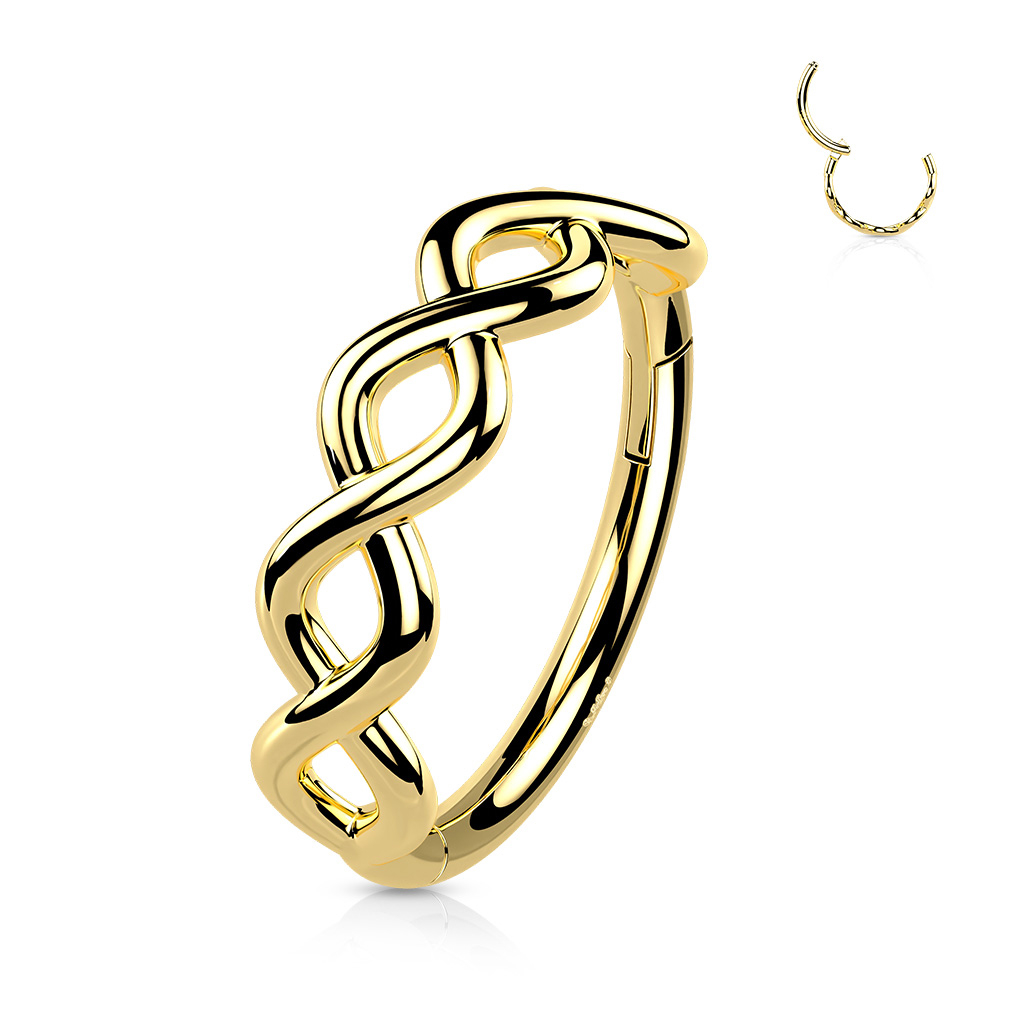 Név: Karika 14K aranyból, csuklós zárral, oldalra néző végtelen csavarral
