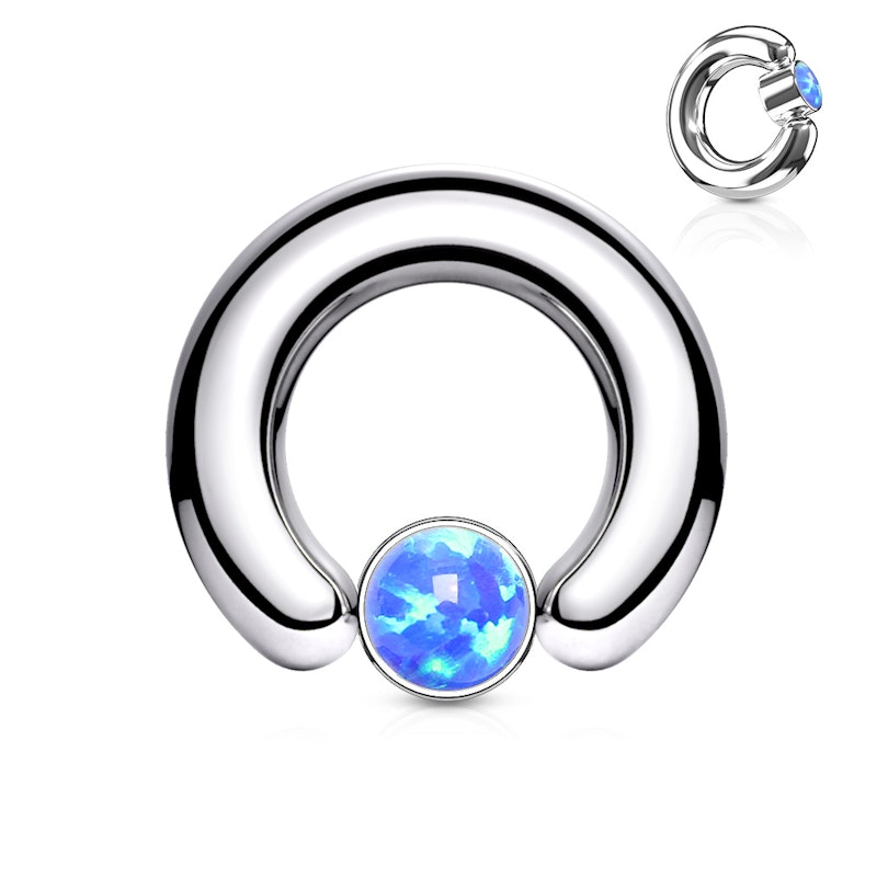 Nem valódi opál ékkő van benne, mivel a valódi opál túl törékeny és nem alkalmas piercing ékszer készítéséhez. A golyózáras karikában hamis opál van, ami jóval tartósabb, de a különbség nem észrevehető.