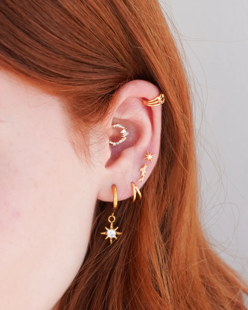 Laposhátú ékszer conch-, helix-, tragus- vagy fülcimpapiercinghez. Emlékeztető arra, hogy még a káoszban is áramolhatsz.