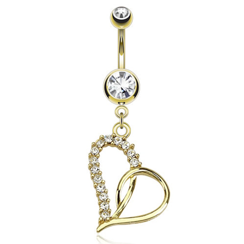 Köldök peircing, arany bevonattal, szívvel és kövekkel