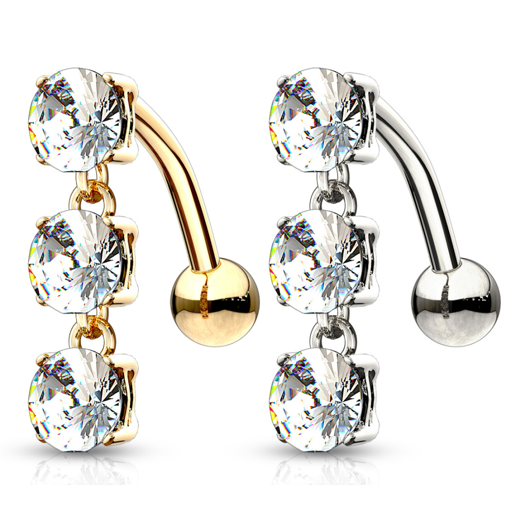 Köldök piercing 14 karátos aranyból, 3 köves fordított medállal