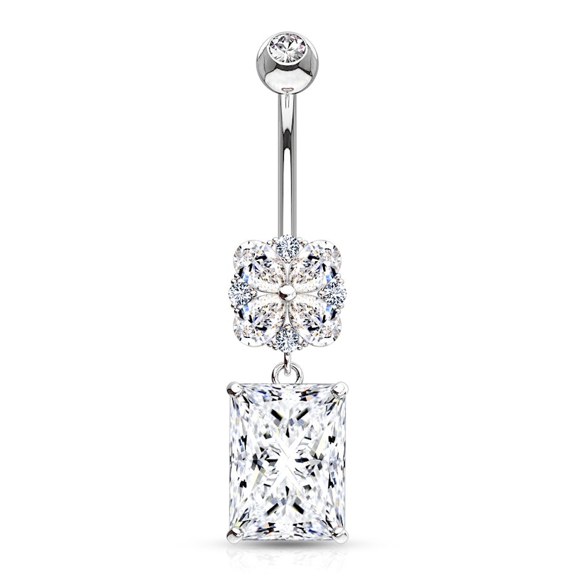 Köldök piercing, 14 karátos aranyból, virág és szögletes kő dísszel