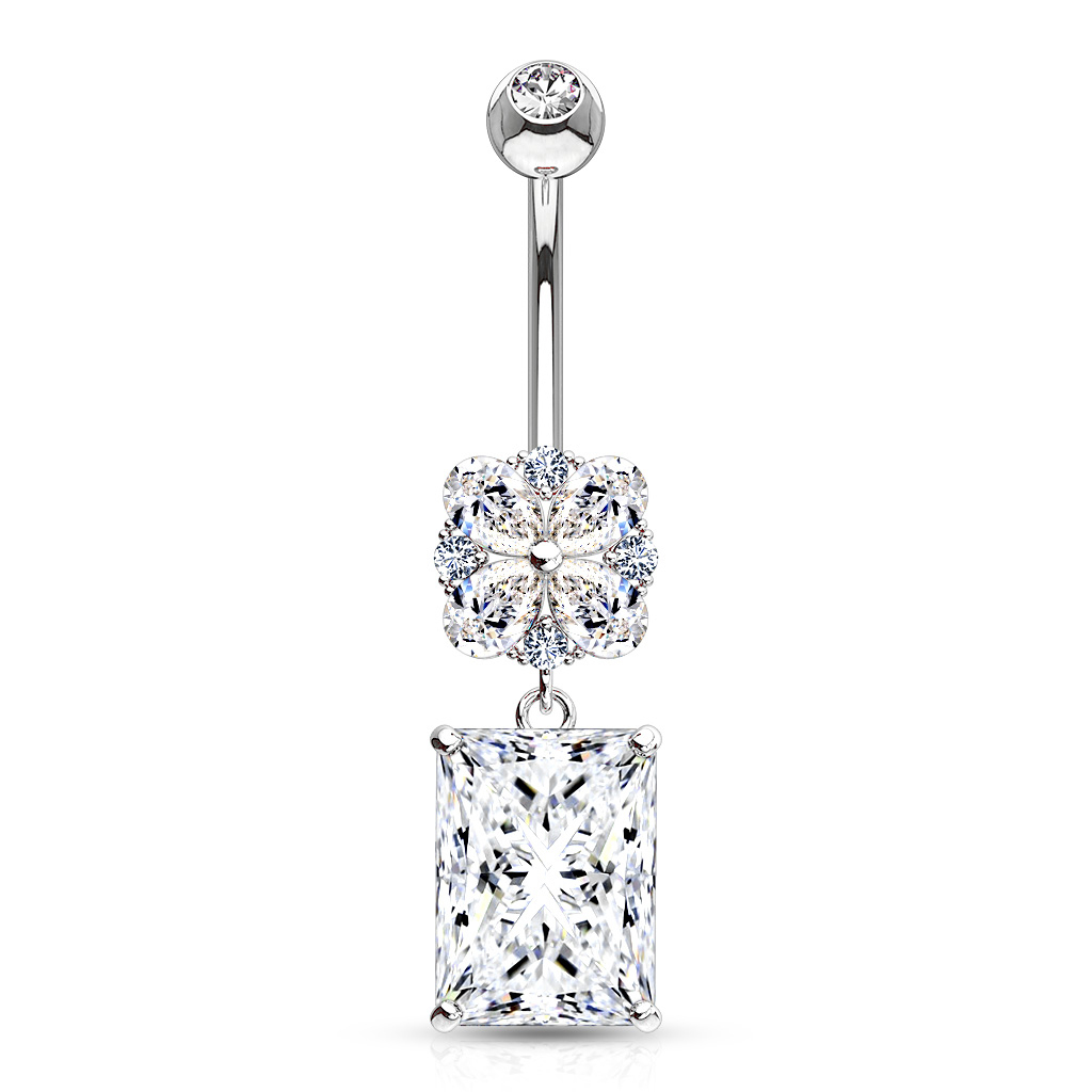 Köldök piercing, 14 karátos aranyból, virág és szögletes kő dísszel