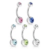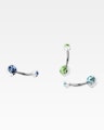 Ez egy egyszerű de nagyszerű, gyönyörű köldökpiercing, ami akár mindennapi viseletre is alkalmas. A szár orvosi acélból készült, az alsó és felső golyó pedig akrilból. Mindkettőt kőberakás disziti, aminek a szinét te választhatod meg.
