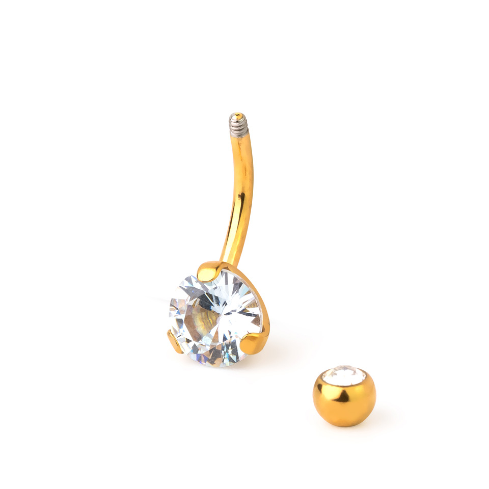Köldök piercing, arany bevonattal és nagy kővel