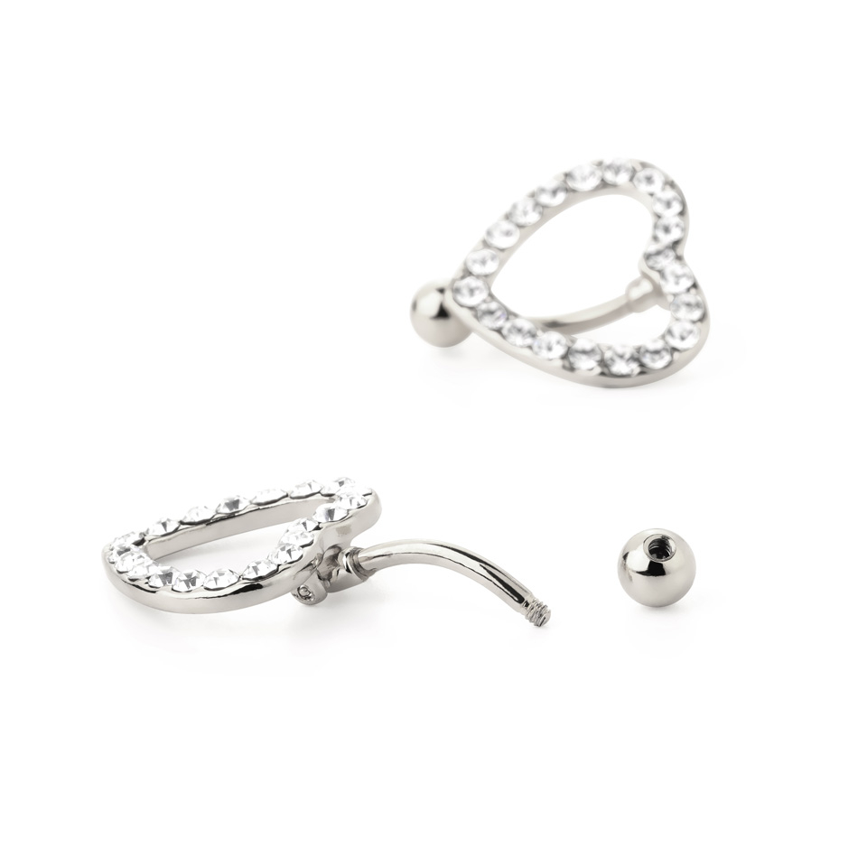 Név: Köldök piercing, csillogó kövekkel kirakott szív dísszel
