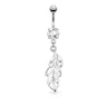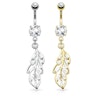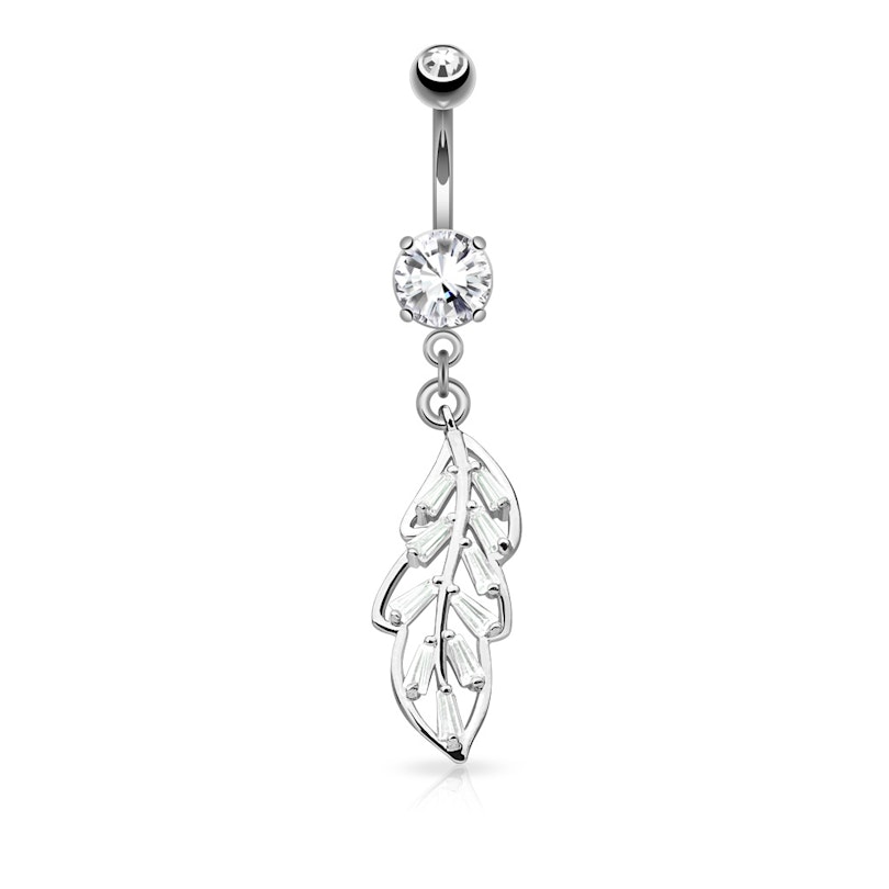 A legtöbb, ember által készitett, gyönyörű dolgot a természet ihleti. Ilyen ez a ragyogó köldökpiercing is, levelet mintázó medáljával.