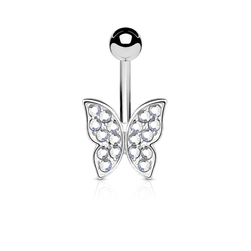 Köldök piercing, csillogó köves pillangó dísszel